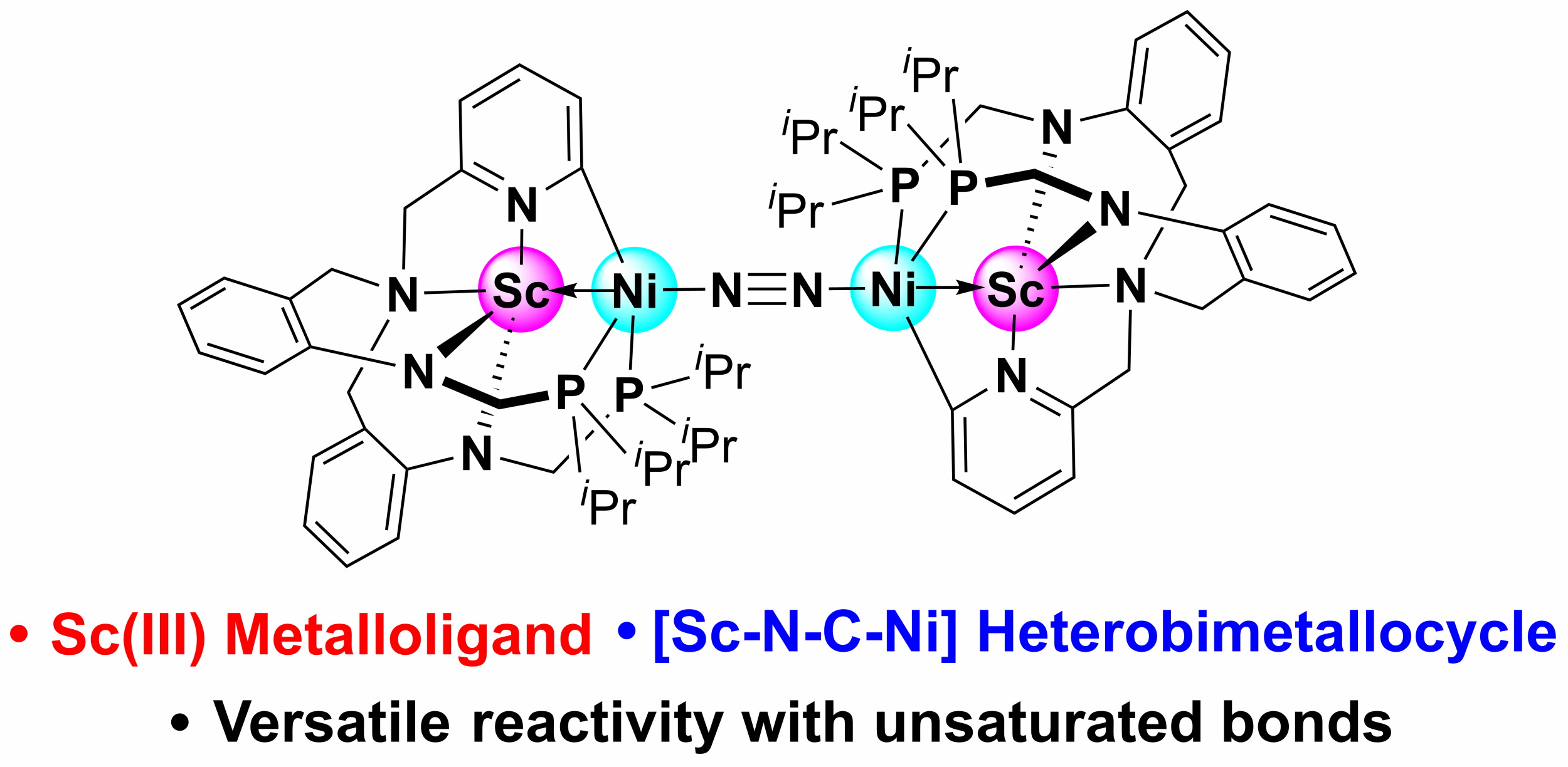 29. "A scandium metalloligand supported Ni(0) complex with a heterobimetallocycle: versatile reactivity with unsaturated bonds." Lei Ma, Xiaowei Pan, Dongjing Hong, Huayi Fang*, Peng Cui*, Chem Commun., 2024, 60, 4222-4225.