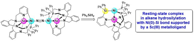 31. "Hydrosilylation of Terminal Alkenes Catalyzed by a Scandium Metalloligand Supported Ni(0) Complex." Lei Ma, Dongjing Hong, Peng Cui*, Eur. J. Org. Chem., 2025, 28, No. e202500069. (Invited paper for the Special Collection Heteroatoms in Synthetic Chemistry and Organic Materials)