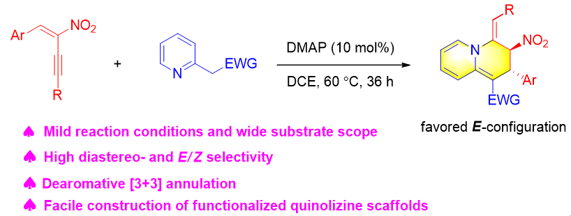 21)Qijian Ni*,Fangfang Xu, Xiaoxiao Song*.Diastereoselective and E/Z-Selective Synthesis of Functionalized Quinolizine Scaffolds via the Dearomative Annulation of 2-Pyridylacetates with Nitroenynes,J. Org. Chem. 2022,87, 9507-9517.link