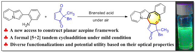 22)Qijian Ni*, Lirong Zhang, Zhiming Zhu, Xiaoxiao Song*.Formal [5+2] cycloaddition of ortho-indolizinyl anilines with cyclo-pentendiones: access to planar indolizine-fused azepines,Org. Chem. Front.2023,10,2526-2531.link