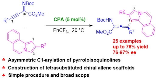 24)Xuan Zhang, Xiaoxiao Song and Qijian Ni*.Organocatalytic regio- and enantioselective C1-arylation of β,γalkynyl-α-imino esters with pyrrolo[2,1-a]isoquinolines,Chem. Commun.2024,60, 831-834.link