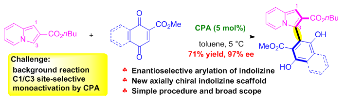 20)Xiaoxiao Song*, Yanjun Fan, Zhiming Zhu,Qijian Ni*.Chiral Phosphoric Acid Catalyzed Asymmetric Arylation of Indolizines: Atroposelective Access to Axially Chiral 3-Arylindolizines,Org.Lett.2022,24, 2315-2320.link
