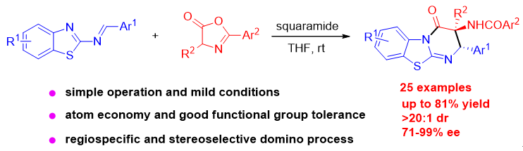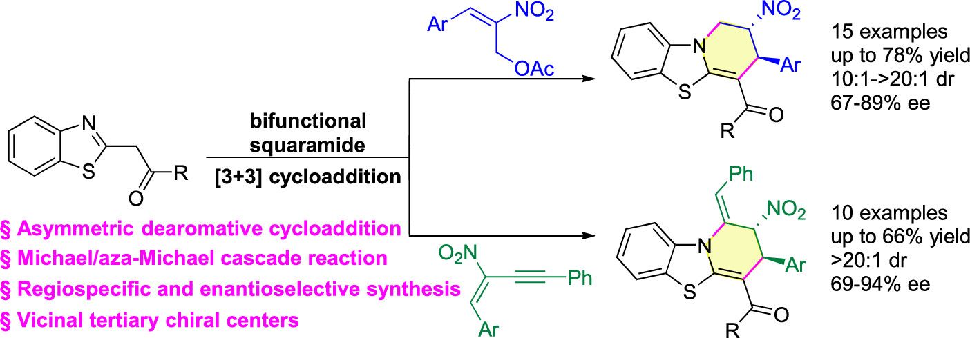23) Xiaoxiao Song*, Wei Qin, Xuyang Wang, Gen Luo, and Qijian Ni*.Bifunctional Squaramide-Catalyzed Asymmetric Cascade Reaction of Benzothiazoles with 2-Nitroallylic Acetates or Nitroenynes,Org. Lett.2023,25, 9164-9169.link