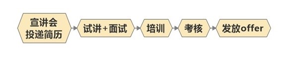 投递简历——试讲+半结构化面试——培训——考核——发放岗位offer