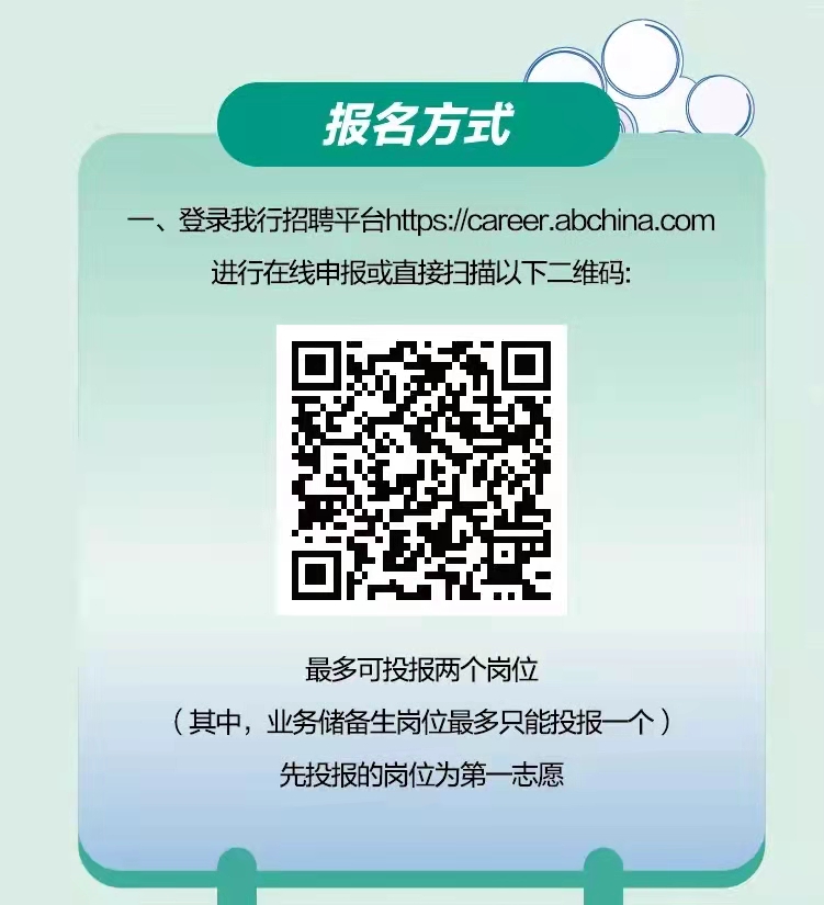 中国农业银行上海市分行2022春季招聘