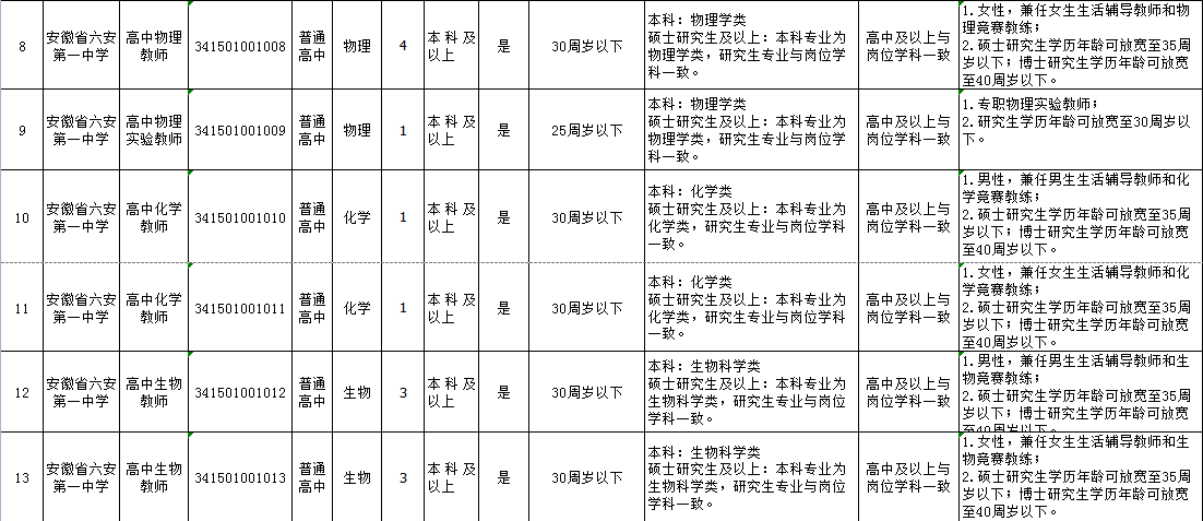 2022年度六安一中计划公开招聘新任教师40名。具体招聘岗位、条件如下(亦可详见附件1):