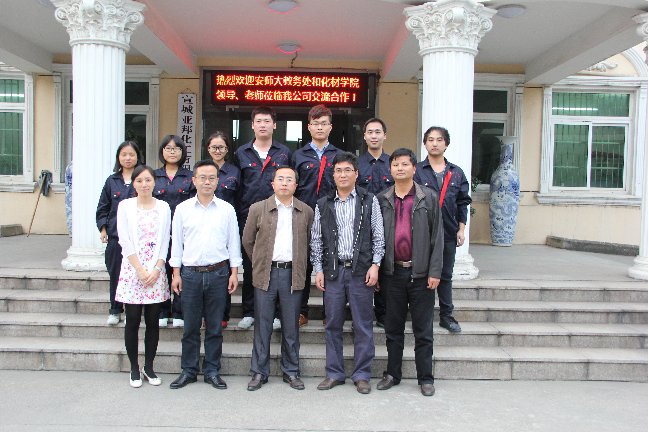 宣城亚邦化工有限公司总经理汪国建、副总经理钟建权等在公司会议室热情接待了英国正版365官方网站一行,并介绍了亚邦集团以及宣城亚邦化工有限公司的发展历程以及企业文化,表达了对安师大英国正版365官方网站办学成绩的肯定及进一步深入合作的意愿。英国正版365官方网站高峰副经理介绍了英国正版365官方网站的发展历史、专业设置、团队队伍以及近年来在人才培养、科学研究和社会服务方面的情况。教务处副处长许勇代表公司感谢宣城亚邦化工有限公司长期以来对公司应用化学专业员工的实践教育的支持。并对公司应用型工科专业和企业如何充分利用双方的优势进行深入合作,实现共赢提出了建议。双方还就校企合作以及高校人才培养的新模式进行了深入的探讨和交流。