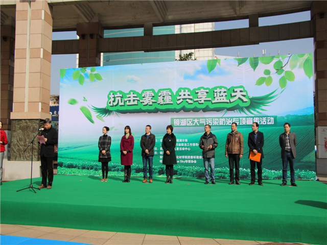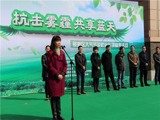 环境保护协会长于小飞作为环保志愿者代表,以化学专业员工身份,从专业视角分析大气污染现状,并向市民发出了“低碳出行、低碳生活、低碳消费、低碳饮食、低碳办公、禁放烟花”六点抗击雾霾倡议。