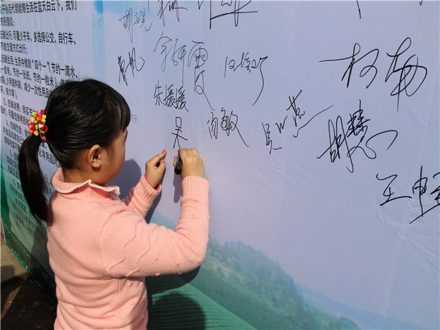 活动现场,各单位领导、环保志愿者以及市民朋友相继在环保宣誓墙上留言签名,表示自己抗击雾霾的决心。环保志愿者也积极向现场市民派发环保倡议信、口罩及环保袋,宣传讲解环保知识。