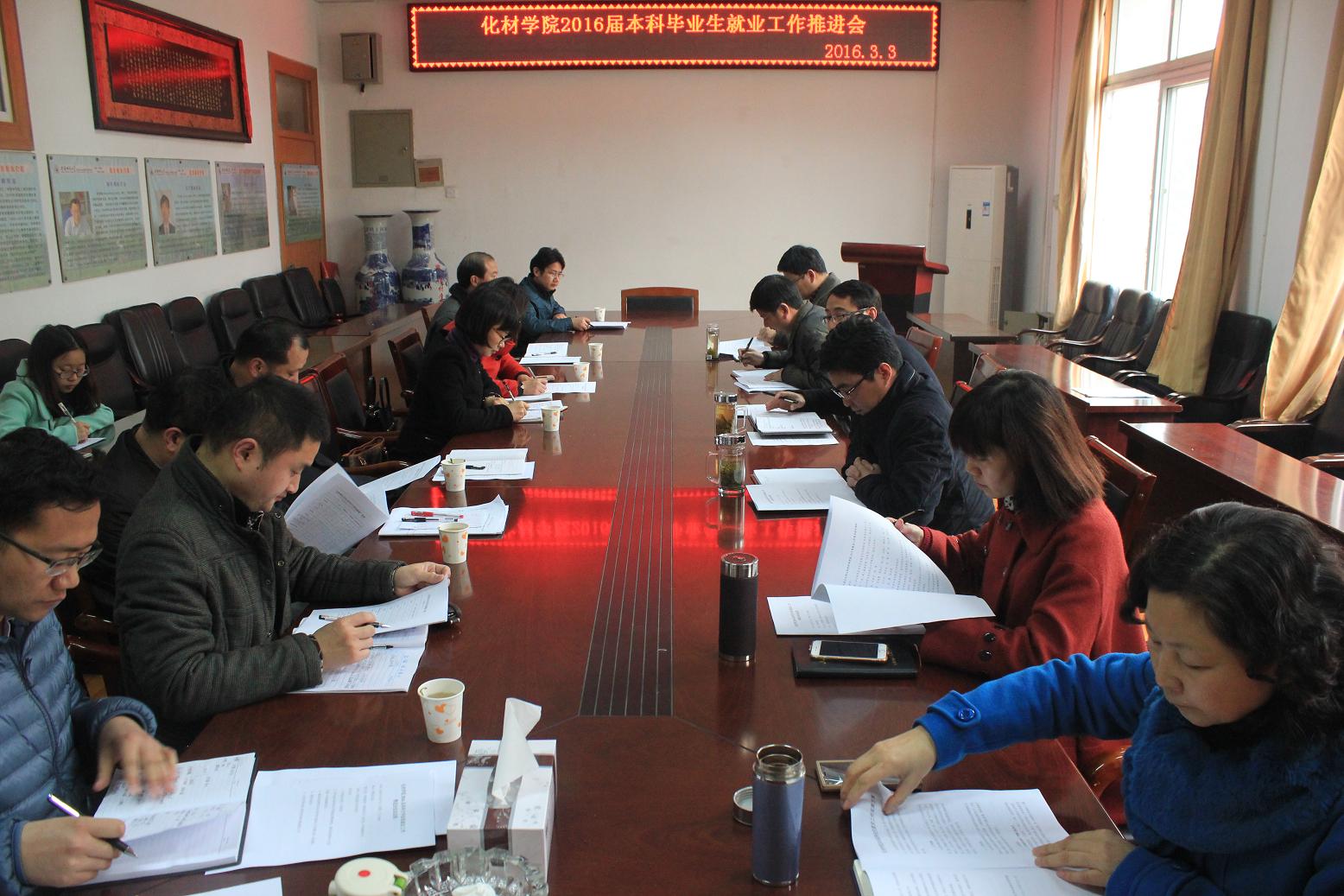 会上,汪俊武首先介绍召开此次会议的目的,通过展示一组校内理科公司就业率数据,强调员工就业是公司发展的生命线,要强化公司“一把手”工程,抓好员工就业工作。接着两位毕业班辅导员介绍了本届毕业生考研就业整体情况、面临的困难和今后的打算。随后余妍霞详细解读了公司2016届毕业生就业工作实施方案,指出目前就业推进过程中的主要困难:有业不就、调剂量大、专业思想不稳固等等,同时也提出了加强就业工作指导和服务的若干对策。就业工作领导组成员在认真听取工作汇报和方案解读后,结合目前就业形势,就如何帮助员工复试调剂,提供优质就业信息等问题展开了交流讨论。