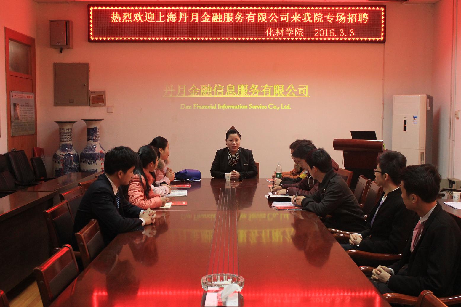 公司开学初,学工组积极发布就业信息,主动联系就业单位来院专场招聘,邀请上海丹月金融服务有限公司和学思堂教育连锁等单位来院选聘毕业生。