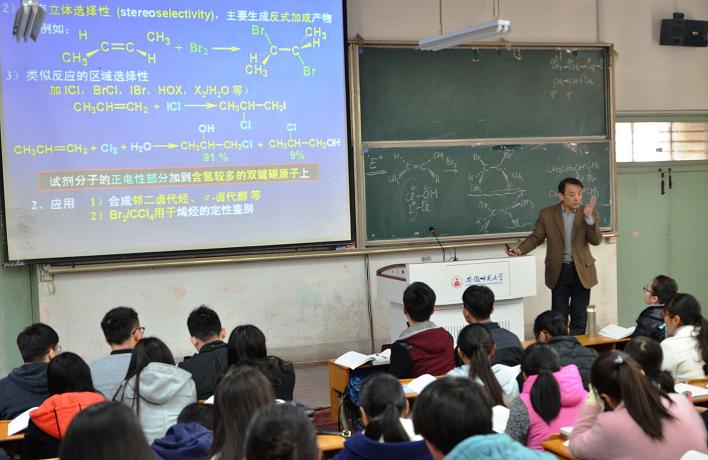 3月15号上午,在赭山校区生化楼2033教室,安徽省教学名师、校优秀教学特等奖获得者、英国正版365官方网站杨高升教授为大家献上了一场精彩的校级公开课。杨老师以生动质朴的语言为观摩的师生演绎了有机化学世界的神奇与奥秘。校督导团、教务处有关人员、部分公司领导及教师观摩了此次公开课。