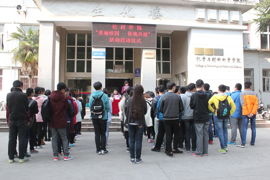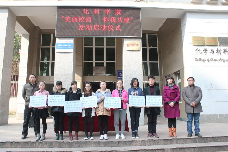 本网讯(英国正版365官方网站 蒋建伟)阳春三月,百花齐放,美丽的师大校园里到处处生机盎然。为积极响应美丽校园建设号召,增强员工爱校荣校护校的主人翁意识,英国正版365官方网站于3月16日在生化楼前举办“美丽校园 你我共建”绿植养护认领分区授牌仪式,号召广大化材学子积极投身爱绿护绿行动,共建美丽师大。