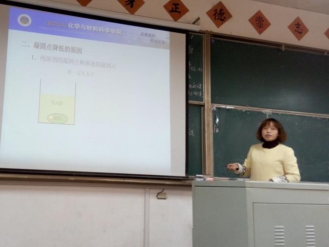 为提高青年教师的从教技能,为参加公司第八届青年教师讲课大赛作准备,2016年3月24日下午,材料化学系在生化楼2024教室举行了青年教师讲课技能辅导。材料化学系拟定由柳守杰和金莉莉两位老师代表本系参加公司的讲课大赛。柳守杰老师进行了题为“一级反应”的微课教学,金莉莉老师进行了题为“稀溶液的依数性之凝固点降低”的微课教学。材料化学系的老师们对柳守杰和金莉莉两位老师的教学进行了点评,在肯定其精彩的一面的同时,也对存在的薄弱环节提出了一些改进的意见和建议,如教学内容要进行适当的压缩和精炼,板书要进一步合理规划和设计,进一步熟悉教学内容,增加跟台下的互动等。