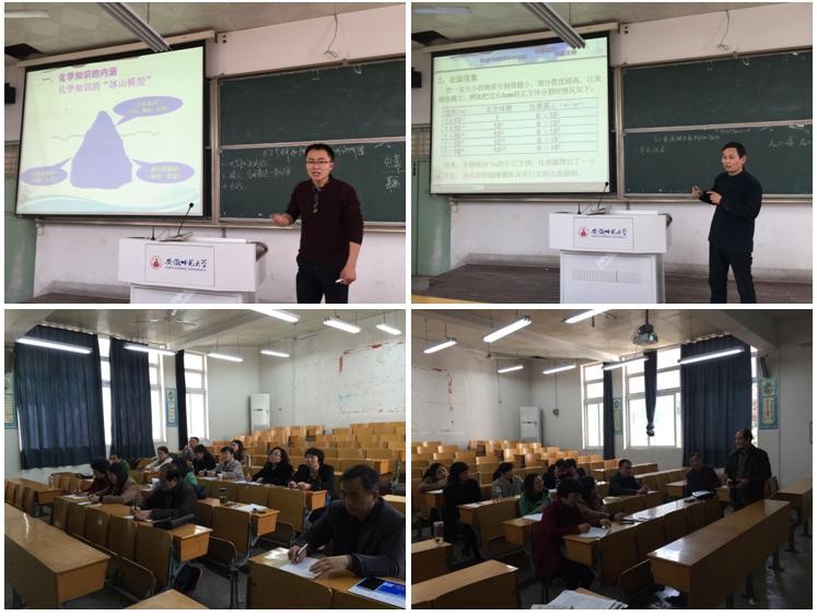 4月1日下午在2033教室,化学系为青年教师参加公司比赛组织了一次赛前的展示和指导,化学系全体教师进行了全程观摩。陈华茂和张四方两位青年教师将板书和PPT相结合,分别围绕“表面能和表面张力”和“分析和挖掘教材的价值”两个知识点,向大家进行了精彩的微课展示。盛恩宏和吴华强两位专家对青年教师的微课表现,从思路的设计、课程的导入、PPT的制作、语言的表达、知识点的前后呼应等多角度进行了详细而又深入的交流和指导;孙影、程瑶琴等多位老师从专业的角度对微课进行了评析。
