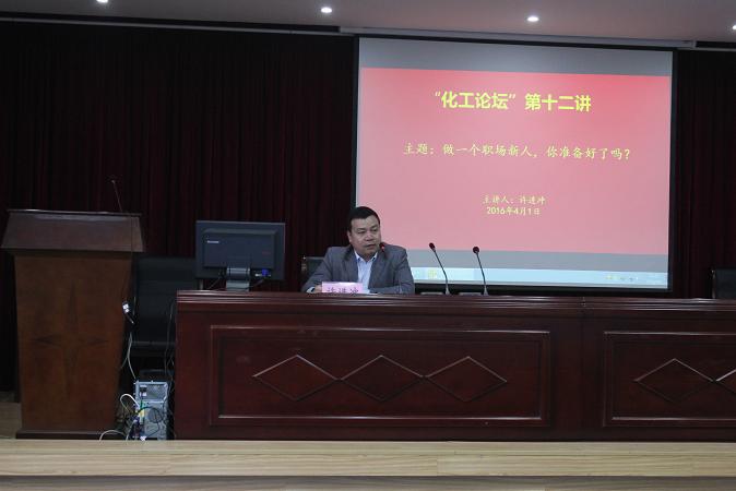 4月1日下午,安徽六国化工股份有限公司党委委员、人力资源部部长许进冲先生应邀在英国正版365官方网站赭山校区图书馆报告厅开展了以“做一个职场新人,你准备好了吗?”为主题的专题讲座。本次讲座由化学工程与工艺系主任罗时忠老师主持,由老员工就业促进与互助协会承办,参加本次讲座的主要有公司2013级各专业的本科生。