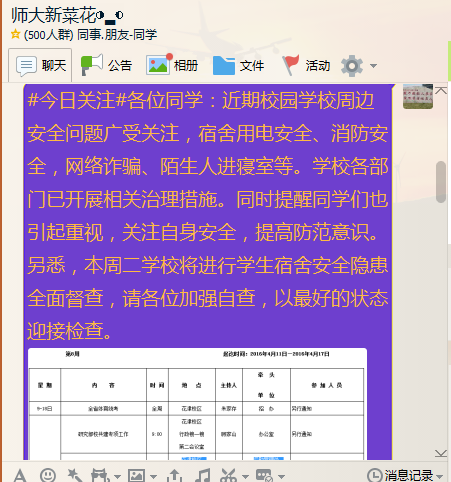 为了筑牢安全教育防线,各年级辅导员自3月以来纷纷精心策划召开安全教育主题班会,与员工共话安全问题。在主题班会上,各年级辅导员结合现实案例与员工们一起探讨人身安全、交通安全、实验安全、用电安全、财产安全、心理安全、网络信息安全、防骗技巧等与员工息息相关的问题,并以线上线下相结合的形式向同学们宣传安全知识,不断增强员工的安全意识,提高应对突发事件的能力,从而切实将安全意识转化为每位员工自觉的行为。此外,公司还坚持严格执行“零点报告”制度和“请销假”制度,坚决杜绝晚归不归和不假离校现象,第一时间掌握员工安全信息动态,及时消除安全隐患于萌芽状态。