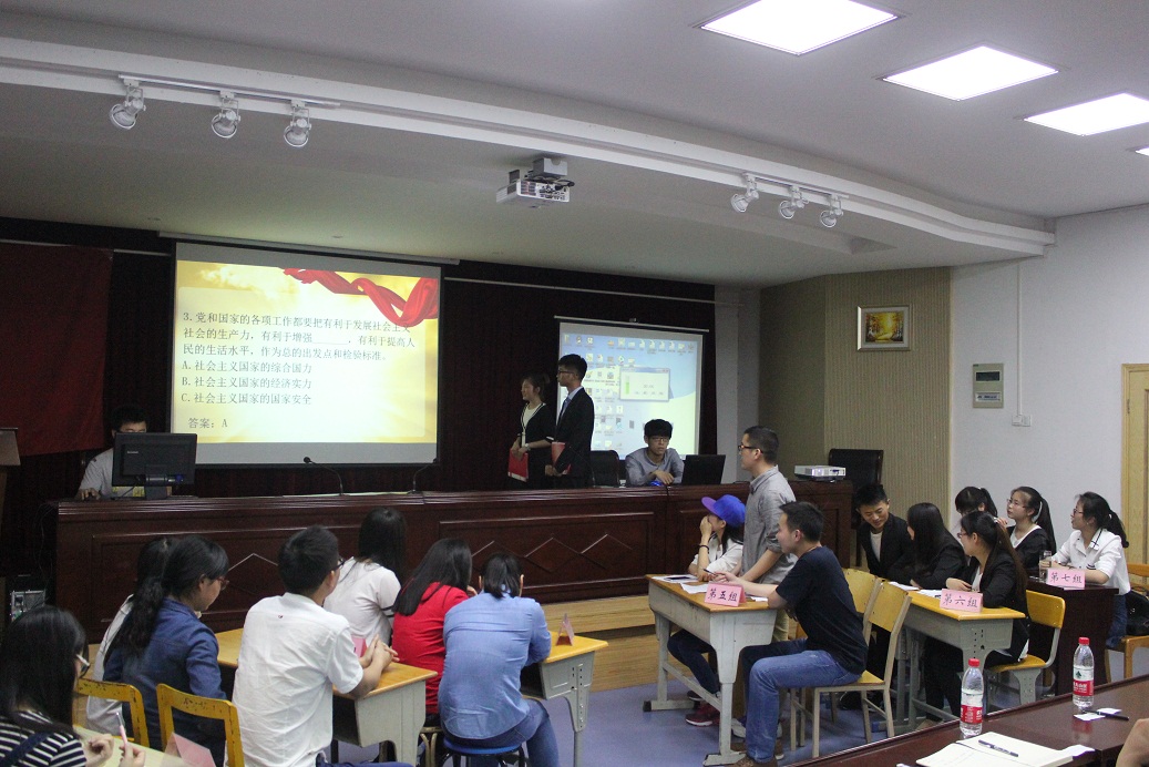 距离活动开始还有十几分钟,现场已是一片剑拔弩张的紧张氛围,参赛小组的党员同学们纷纷拿起手中的学习资料,低头小声念读。本次活动以党支部为单位共七个小组参加,每组三人。活动开始后,主持人向大家介绍此次活动分三部分:必答题、抢答题和讨论题。必答题回答环节中,题目多为基础的党章党史知识,同学们的回答均令人满意。把现场气氛推向最活跃的是第二部份的抢答题。本环节每组派出一名组员进行争夺答题权,其余同学帮助作答。抢答题目设置灵活多变,难度相较于必答题有所提升,活动现场各组针锋相对,比分你追我赶。最后出场的是陈述题,通过讨论与陈述,学员们对于共产党员所拥有的权利与应履行的义务、“三个代表”重要思想的具体内涵、科学发展观的重大意义和“谈一谈印象最深刻的一次党课收获”等问题进行阐述和回答。活动现场气氛热烈,参赛选手表现精彩,最后由第七学习小组获得比赛一等奖,第二和第六学习小组获得比赛二等奖,第一、三、四、五小组获得比赛三等奖。