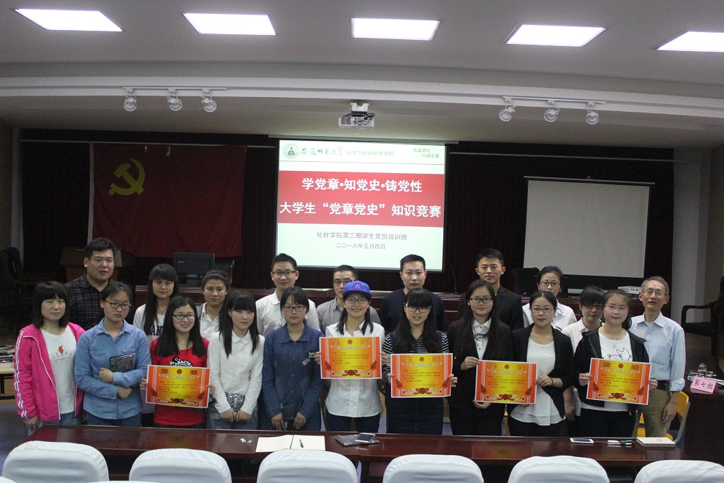本网讯(英国正版365官方网站分党校)为锤炼老员工党性修养,进一步扎实推进党课实践活动开展,英国正版365官方网站分党校于2016年5月4日在赭山校区图书馆报告厅举办了“学党章?知党史?铸党性”老员工党章党史知识竞赛。本次竞赛旨在培养学员们通过学习党章、了解党史更进一步培养党性观念,坚定理想信念,锤炼道德操守。党校指导老师胡敏老师、党校班主任蒋建伟老师和100余名学员共同参与学习。