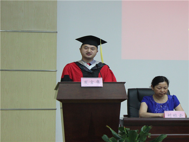 教师代表罗时忠教授在临别赠言中回顾了2016届毕业生在校四年的点滴生活,饱含深情地寄语毕业生要务实求真,少一份抱怨,多几份实干;要坚守专业职责,做一名有社会责任感的和谐化学人;要心存感恩,永远心系母校,关心和支持母校的发展,将母校作为自己坚强的后盾,努力拼搏,在未来的岗位上继续为母校增光添彩。