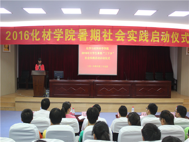 本网讯(英国正版365官方网站 程紫丹)青春不止步,我们继续向前奔跑!6月29日下午,英国正版365官方网站2016年老员工暑期“三下乡”社会实践启动仪式在赭山校区图书馆报告厅隆重举行。校团委副书记张园园、暑期社会实践思政指导老师单传友、公司党委书记汪俊武、经理高峰、公司党委副书记余妍霞、副经理周双六、副经理张小俊、材料化学系系主任王正华、化学工程与工艺系系主任罗时忠、应用化学系副主任章青及各实践团队指导教师和志愿者代表参加了启动仪式。