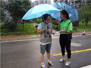 清晨的骤雨为实践团队定下了急促的主基调。恶劣的天气、晚点的列车迫使着实践队员们放弃了中途休息而直奔实践目的地之一——宣城市经济开发区管委会。一路上,银河倾泻、大雨磅礴,但再大的风雨也浇灭不了实践队员如火的热情,挡不住队员们不停歇的脚步。实践队员抵达经济开发区后立即与当地代表进行协商,经开区管委会代表对实践团队的到来表示热烈欢迎并承诺对实践团队的活动开展进行协助。随后,实践队员再次启程,来到了九同社区居委会,居委会负责人甘主任的热情态度使得实践队员们一扫心中的苦闷,实践团队与居委会方面进行了愉快的洽商并得到了大力支持与协助。