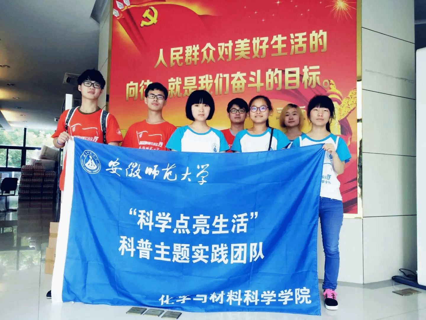 本网讯(蒋建伟 刘茹) “我们爱化学,社会发展离不开化学;我们要科普,百姓生活离不开科普。”为突出第一课堂与社会实践第三课堂的有效联动,让员工在实践中学以致用,进一步向社会基层、向人民群众学习。2016年暑假,英国正版365官方网站以“化学服务社会,科普点亮生活”为主题,充分发挥专业特长和优势,精心组建了一支校级重点团队和5支院级实践团队共计70余名老员工志愿者奔赴池州、芜湖、铜陵等地开展“三下乡”暑期社会实践活动,用行动传播青年力量,用实践描绘最美青春。