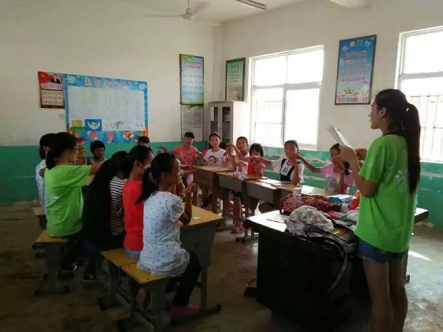 在“阳光成长”主题文体活动中,实践队员们带领员工们唱歌、跳舞,让员工体会到不一样的校园氛围。没有操场,实践队员们就自己打扫,扫出一片空地,作为孩子们的舞台。为了给孩子们防晒,实践队员们让孩子们站在阴凉处,自己则站在烈日底下。付出的一滴滴汗水在结束的文艺汇演时却变成了不舍得泪水,流进了实践队员和留守儿童的心里,滋润着心灵。