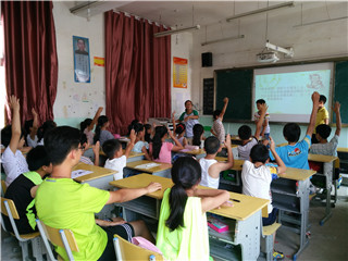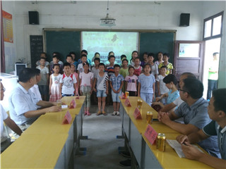 在柳畈小学,余妍霞一行亲切慰问了实践团队队员们,看望了正在开展绿色环保绘画课的志愿者和员工们,并认真听取了同学们对活动开展情况的汇报,以及在实践过程中的收获和体验。2014级材料化学专业张君良同学代表团队从宣教对象选拔、宣教课堂讲授、团队组织管理、安全保障、后勤生活等几个方面汇报了前期开展活动情况及成果,随后实践队员与领导老师们展开了真情洋溢的交流,团队成员畅谈自己内心的想法及感悟。在听取了大家的发言之后,余妍霞充分肯定了暑期实践团队的努力付出,她希望每位队员都要把自己的感悟沉淀成成果,理性思考,走向成熟,在适应社会的同时不要丢弃内心的那份纯真,将环保实践要坚持到最后。