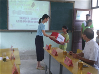 本网讯(英国正版365官方网站 叶方 方馨)2016年8月15日,因之前洪涝及次生滑坡被迫推迟了一个多月的英国正版365官方网站赴安庆市“博爱·江淮环保行”主题实践团队终于顺利抵达目的地,开展为期十天的生态环保宣教及调研活动。8月17日,公司党委副书记余妍霞、材料化学系主任王正华、院团委副书记程紫丹、环境保护协会指导老师袁青兵来到安庆市岳西县田头乡柳畈村,看望慰问实践团队成员,并对实践活动提出了指导。