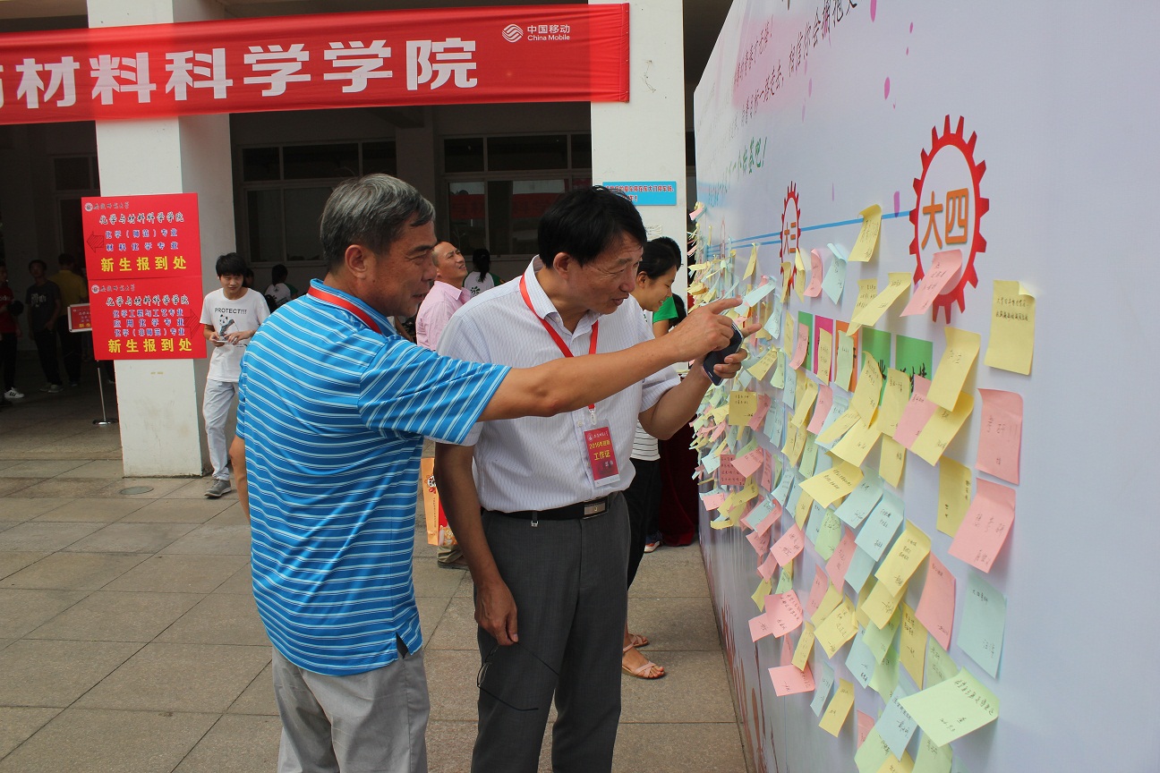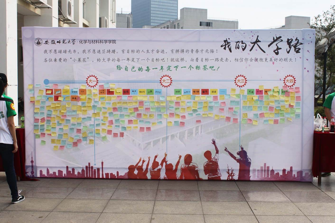 此外,公司还精心组织开展了“我的大学路”现场设计活动。在迎新志愿者指引和帮助下,2016级新生在便签纸上写下自己心中期待的老员工活,与自己设计的“大学之路”合影,以此激发新生对美好老员工活的向往,鼓舞自己努力奋斗完成自己的青春梦想。