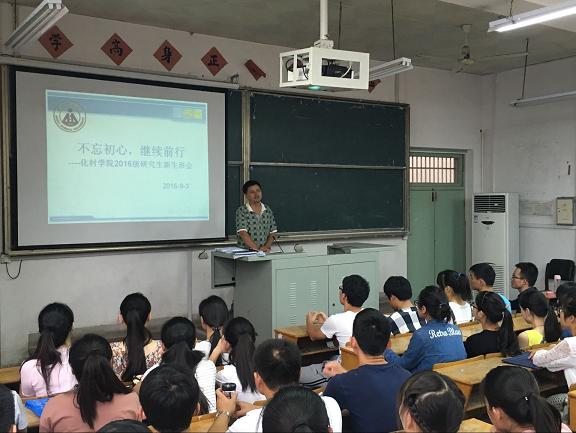 下午4时30分,全体2016级硕士研究生在生化楼2024召开了主题为:“不忘初心,继续前行”的主题班会,会上科研副经理周双六发表了讲话,介绍了公司的发展现状、各专业的基本概况,同时对2016级硕士研究生提出了殷切希望。研究生秘书赵全胜对2016级新生的到来表示热烈的欢迎,在简要回顾公司总体概况、员工组织等情况后,对接下来新生入学后的工作展开了布置。