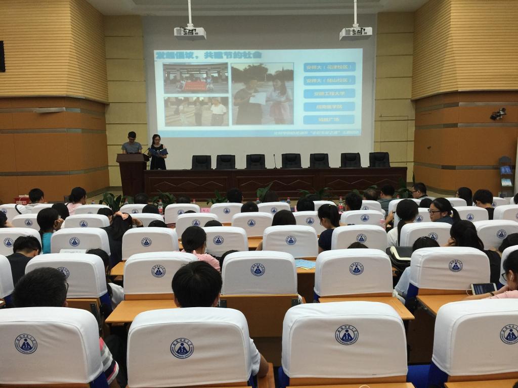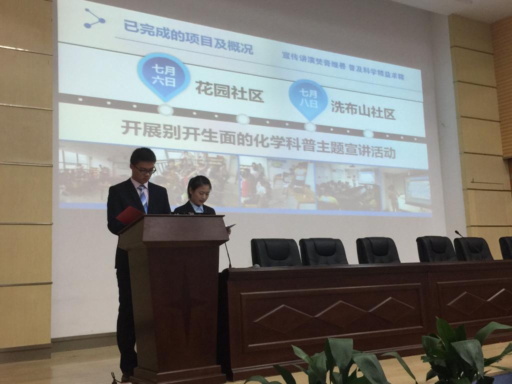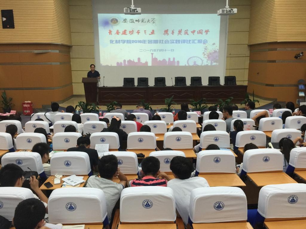 2016年暑期,英国正版365官方网站42支社会实践团队562名志愿者奔赴社会一线展开活动,向人民群众拜师学习。此次评比会根据前期材料共遴选出14支团队进行汇报。每位汇报人用6分钟的时间,将一群人共同奋斗的难忘历程,结合内容详实的ppt娓娓道来。博爱江淮环保行、老员工就业创业调研、“两学一做”关爱留守儿童先锋行、科学点亮生活、化学服务百姓生活、寻访名师·对话成长……丰富多彩的主题是英国正版365官方网站社会实践第三课堂全面育人、化材学子多向发展广泛实践的生动体现。赴安庆池州环保实践团队总结实践收获:环保实践只有起点,没有终点,我们的环保行动一直在路上;赴马芜铜科普实践团队以“化学服务社会,科普点亮生活”为主题,充分发挥专业特长和优势,传递科学正能量,服务社会勇担当;赴怀远县暑期支教团队用真诚的心、实在的行,彰显着志愿者的青春面貌;赴皖江城市带关注老员工就业创业调研团队用万余字的调研报告展现着我们对老员工就业前景的关注和努力。汇报过程中,各团队主题明确,逻辑清晰,思维活跃。一张张生动的照片、一个个真实的数据、一本本记录实践点滴的日志、一篇篇在媒体上发表的活动新闻稿件……汇报者们用不同的形式传递共同的声音,那是收获、成长、感动、改变。
