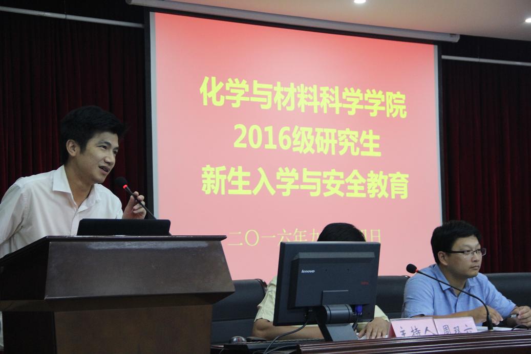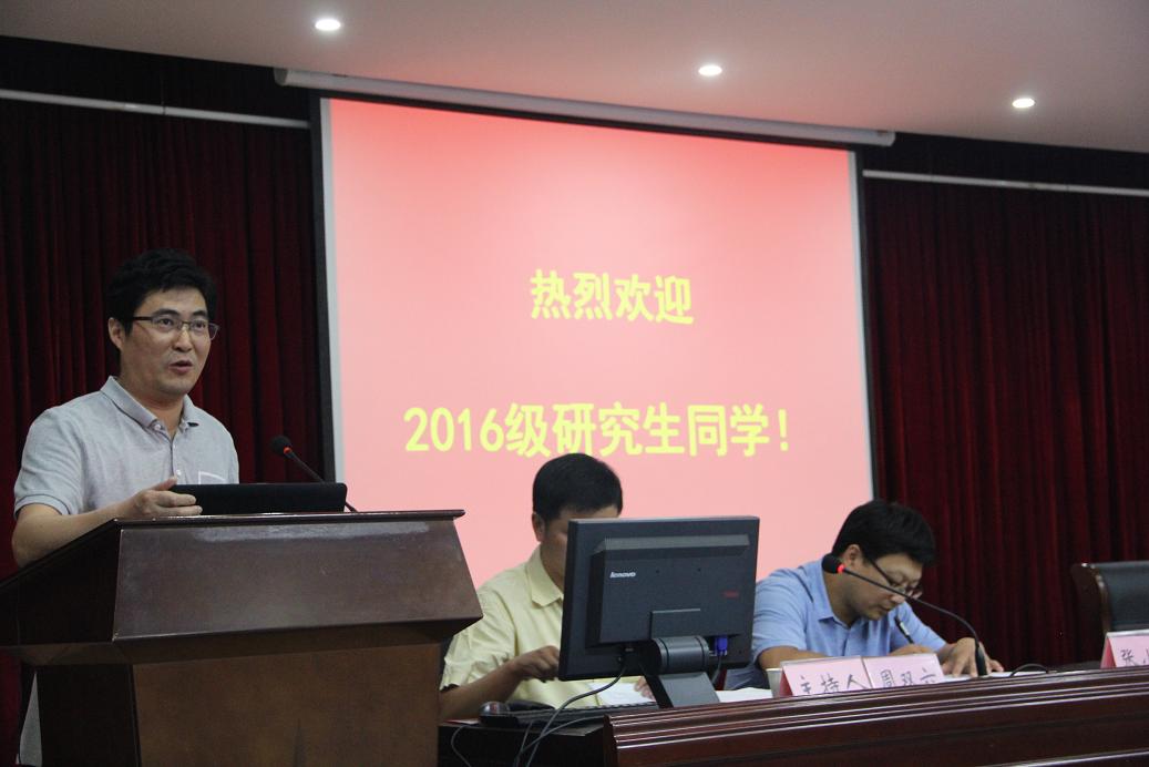金秋送爽,丹桂飘香,9月14日上午,英国正版365官方网站2016级研究生新生入学与安全教育在赭山校区图书馆报告厅举行。院领导班子成员、各学位点负责人、导师代表、研究生秘书、新生辅导员及全体2016级研究生新生参加了会议。大会由科研副经理周双六主持。