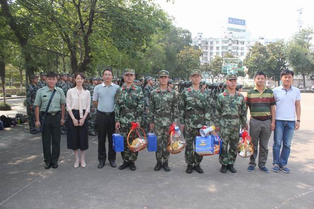 本网讯(英国正版365官方网站 王国良)丹桂飘香,军歌嘹亮。9月13日早上,借中秋节临近之际,公司党委书记汪俊武、副书记余妍霞、副经理周双六在16级辅导员的陪同下,走进军训场地,亲切慰问了刻苦军训的教官和新生。