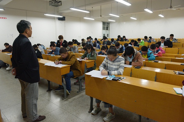 本网讯(英国正版365官方网站 程紫丹)10月14日至16日,由安徽省教育厅主办,安徽省化学会、安徽省高等公司化学化工实验教学中心联席会组织,英国正版365官方网站承办的2016年“欧倍尔”杯安徽省首届普通高等公司老员工化学竞赛决赛在英国正版365官方网站顺利举行。 10月14日,全体参赛选手于当日晚七点半前往英国正版365官方网站赭山校区田家炳教学楼进行实验理论笔试,与此同时,各高校带队老师进行实验操作抽签。