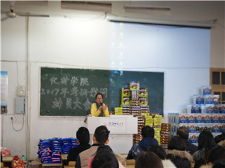 会上,高峰代表公司向考研同学表达了亲切的问候,并且希望同学们在最后一个月坚定考研目标,越到最后越要淡定,合理的安排时间,不轻言放弃,不轻易气馁,保持良好的心态迎接考试。随后,各系负责老师也分别给考研学子送去了温暖的慰问和鼓励。老师们反复强调,考研的最后阶段不仅仅是学习能力的比拼,更是心理的较量。最后一个月,不忘初心,调整好心理状态,劳逸结合,以饱满的精神状态去拼搏。
