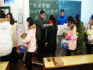 会议最后,公司领导及各系负责老师亲自为考研学子发放牛奶等营养品。天气虽冷,但是公司给予同学的关爱是暖的,同学们向上拼搏的热情也只增不减。大家纷纷表示一定会拿出百分之百的努力去迎接考试,并以满意的成果去报答公司和老师的关爱和期盼。