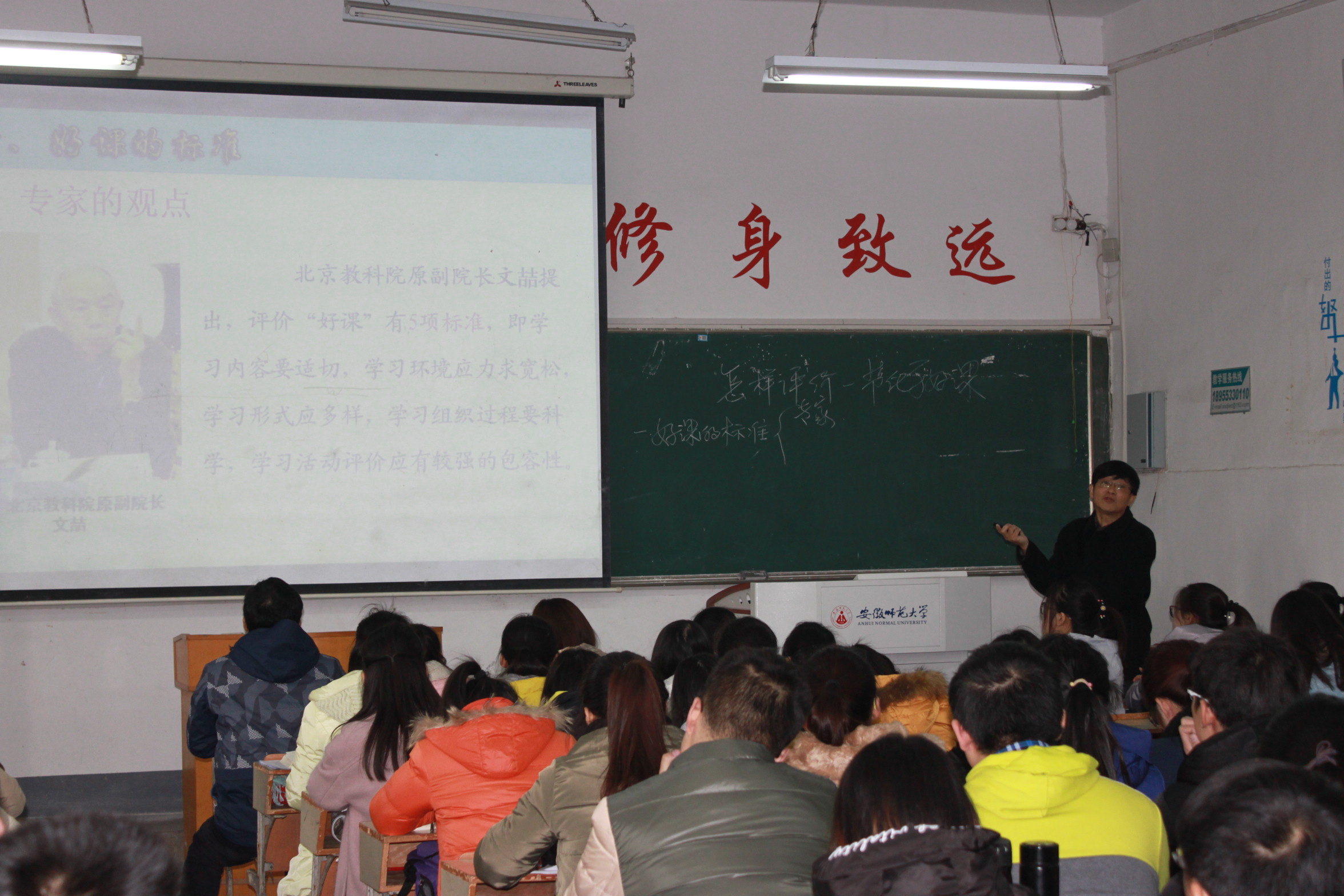 本网讯(英国正版365官方网站 蒋建伟)11月25日下午,本学期英国正版365官方网站本科教学示范观摩课在赭山校区教学楼1302教室举行,“党和人民满意的好老师”安徽省推选展示人选、安徽省教学名师、英国正版365官方网站卓越教学贡献奖获得者、英国正版365官方网站闫蒙钢教授主讲《化学教学论》课程中的“化学‘好课’的评价标准”专题。公司教学督导组,英国正版365官方网站副经理张小俊,化学系主任阚显文及部分中青年教师等20余人参加了此次观摩活动。