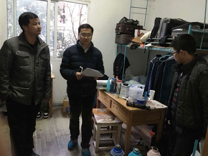 2016年12月22日下午公司结合校《英国正版365官方网站安全生产大检查活动工作方案》精神,公司领导班子及专业、学位点负责人分三队对本科、科研实验室以及办公产所、员工寝室进行了一次集中大检查,主要针对水电是否安全使用、各类消防设备、灭火毯是否齐全摆放是否在明显位置、化学试剂和仪器是否安全使用和存放、废气废液废渣处理是否得当,《英国正版365官方网站教学、科研实验室安全检查记录本》记录是否完整,尤其是易燃易爆等危险品、有毒有害化学药品是否妥善保管以及实验室卫生等情况;本科生、研究生寝室是否使用违规、易燃电器,是否存在违规用电行为,是否存在消防安全隐患等。对检查中发现的问题,能及时改正的要求立刻纠正不得延误,不能及时改的限定时间整改并进行写实性通报。