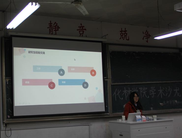 王骏首先与同学们探讨了研究生应具备的基本素质,随后与大家分享了查阅文献的方法,并介绍了他所做的一些工作。特别是他提到的关于员工与导师关系的“华氏兔子定律”给全场同学留下了深刻的印象。关文梅从学习、科研、沟通三个方面分享了她的一些经验,以其自身经历强调看文献的重要性,并且分享了她常用的一些学习网站。洪璐则是强调了新颖的实验思路的重要性,阐述了如何规划具体的实验过程和记录实验数据。一个实验成功的背后所要付出的努力是巨大的,她结合自身经历分享了如何解决实验中遇到的一些问题。最后,同学们各自就现阶段面临的问题与主讲人进行了交流。