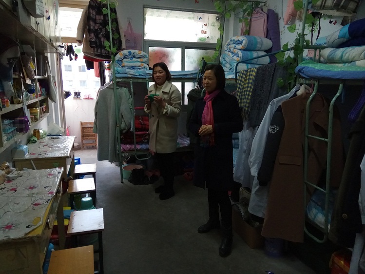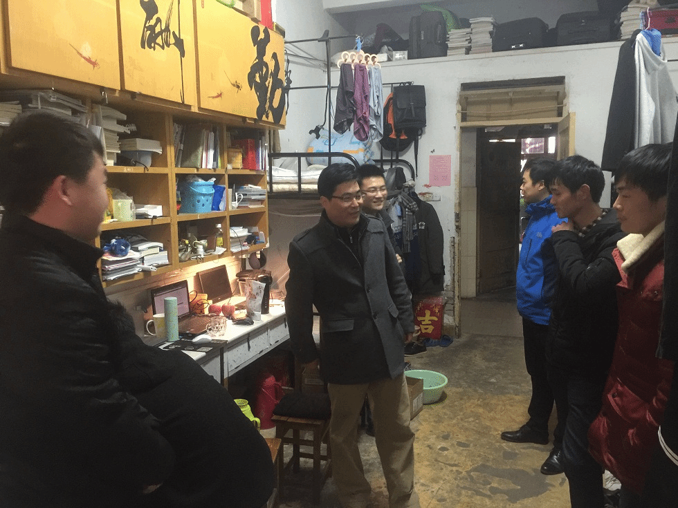 在走访过程中,领导老师亲切询问员工假期的学习和生活状况。书记汪俊武、副经理张小俊在走访新生寝室时,重点询问了同学们生活中遇到的困难,新学期的学习规划情况,勉励一年级同学要树立明确的目标、勤奋学习、积极进取。经理高峰、副书记余妍霞在走访毕业班宿舍时,分别对现在正在积极求职的毕业班员工表示支持和鼓励,希望他们要树立“先就业再择业”的就业观念,求职过程中要保持信息畅通,积极主动认真准备。副经理周双六、刘桂云在走访二三年级的员工寝室时,重点关心了员工的学业发展,认真询问了同学们的近期目标和规划,鼓励同学们要学好专业课,夯实基础,为考研和就业做好充分的准备。公司领导和辅导员老师除了了解员工的生活、学习情况,还重点排查了宿舍的安全隐患。新学期伊始,大部分同学精神面貌良好,对于少数在卫生和安全方面存在问题的寝室,也现场明确提出整改意见。