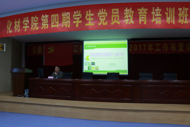 陈文兵首先指出两部党内法规修订的必要性和重大意义,指出对于党员,纪律是高压线,对于政党,纪律是生命线,他强调:“《准则》是‘航标’,《条例》是‘雷池’,理想信念是钙,精神缺钙,就会出现道德软骨病”,用生动的语言解释了两类党规的区别与意义,激发了学员的学习党内法规的兴趣;并结合当下一些典型的实例向学员讲述了两部党内新法规的主要内容、亮点及其重要意义;陈书记结合新《准则》和新《条例》的亮点内容,向学员们重点介绍新《条例》的六大纪律(政治纪律、组织纪律、廉洁纪律、群众纪律、工作纪律和生活纪律),期间还使用诙谐的漫画引导学员对违纪行为有所思、有所感;结合现实违纪行为的复杂性,陈书记从十个方面细致的介绍了有关规定的纪律底线,引导学员认识到纪先于法,纪严于法,指引全体学员一要做到深入学习,二要做到自觉遵守,三要做到严格执行。