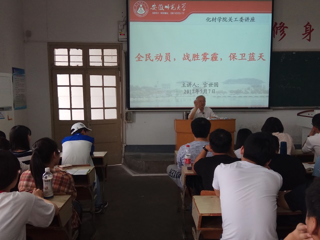 全民动员抗雾霾,保护环境享蓝天。5月7日下午3点在1302教室,英国正版365官方网站关工委副主任、环境保护协会指导老师宫世国老师受邀为化材学子做了一场题为“全名动员、抗击雾霾、共享蓝天”的报告。环境保护协会骨干成员、2016级各专业共120余名员工代表参与学习,讲座由辅导员王国良主持。