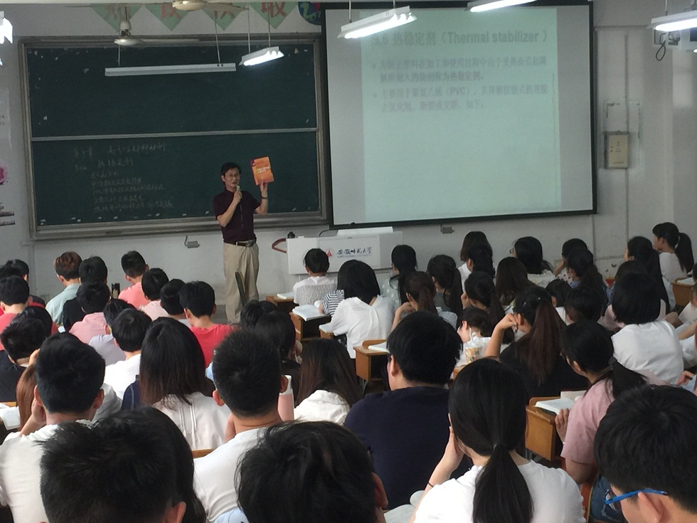 本网讯(英国正版365官方网站)5月10日上午,在赭山校区田楼8103教室,化材公司周运友教授为2015级应用化学专业员工作了“高分子助剂——热稳定剂”的公开课教学。公司督导组、院领导以及公司中青年教师等近20人参加了观摩活动。