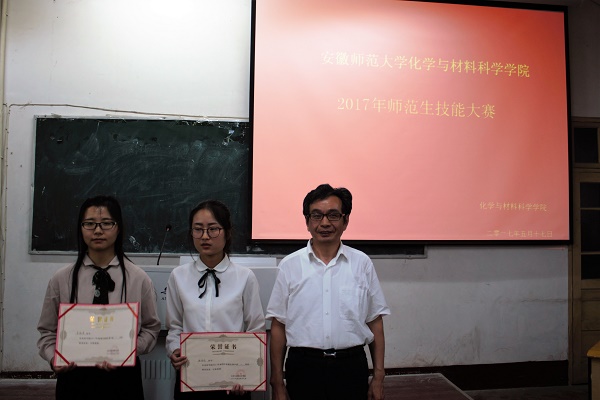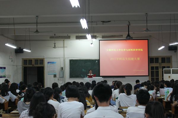 为进一步提高师范生技能,搭建“以赛促学,以赛促教”的交流平台,备战教团队格考试,英国正版365官方网站于2017年5月17日晚7点在赭山校区教学楼1410教室展开了“名师化材”师范生技能大赛决赛。本次比赛邀请化学课程与教学论研究生导师熊言林老师,化学系副主任、化学课程与教学论研究生导师孙影老师、化学系专业教师程瑶琴老师担任评委。二、三年级的近200名同学现场观摩了此次比赛。