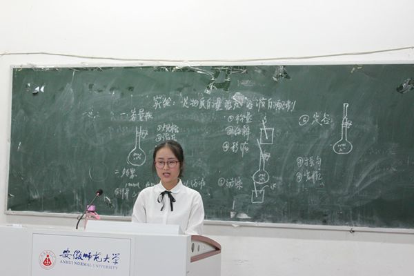在整场比赛中,各选手表现均十分精彩,其中,陈梅芳同学所讲授的课程是“一定物质的量浓度的溶液的配制”该选手授课时语言幽默风趣,板书工整详尽,整体上授课思路清晰颇有条理,授课结束后也赢得了观众们的一致喝彩。选手吴淑君在“氧化还原反应”的授课中,尽显未来年轻教师的风采。不管是语言的生动讲述,还是黑板上的板书的独特思路,以及对于化学模型的应用均体现出了青年教师的创新以及敬业精神,该选手授课整体上以点破面,并用简练的语言说出重点,获得了观众及评委的阵阵掌声。经过评委们公平公正的评审打分后,沈子奕等五位选手获得三等奖,马魏魏等三名选手活动二等奖,吴淑君等两位选手荣获一等奖。