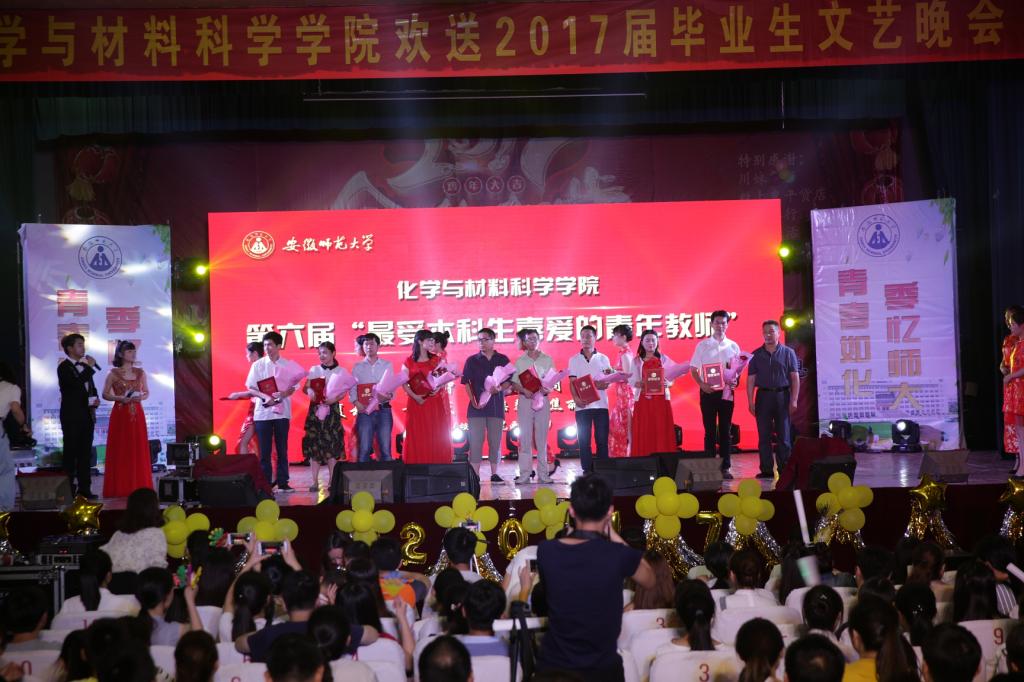春日清风送爽,绿荷生机昂扬。毕业生节目《荷韵》将傣族舞蹈与绿裙红伞紧密的融合在一起,一收一放,一摆一动之间尽显公司员工不尽的青春活力。器乐合奏《Dream it possible》将一个励志的故事融于合奏中,通过舞姿展示出化材人在遇到磨难时永不言弃的精神。合唱团带来的大合唱《我的梦》用化材院最高亢的声音唱出了化材院毕业生对于梦想的渴望与追求。孙益民老师和同学们一起带来的《北京东路的日子》用口琴、吉他演绎别样的老员工活,勾起了毕业生们对于公司回忆的无限眷恋。师德风韵,薪火相传。师生恩情永难忘,晚会上,由毕业生评选出的10名第六届“最受本科生喜爱的青年教师”登上舞台,校纪委书记程度为获奖教师颁奖,员工代表送上鲜花感谢师恩。夏云生老师代表获奖教师表达了对毕业生的深情祝福和殷切期望。