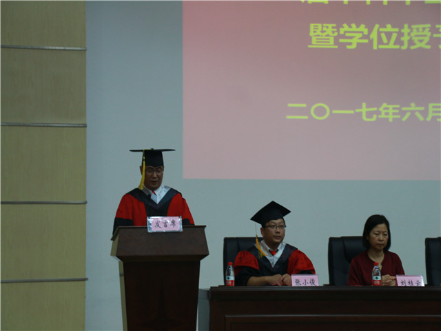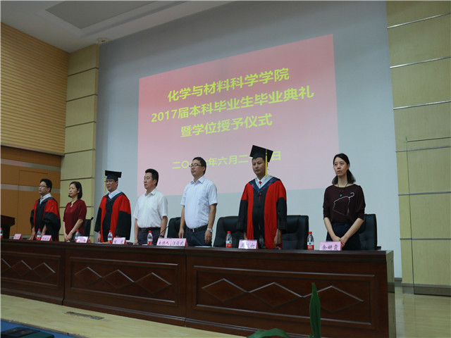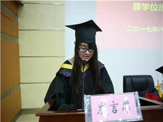 教师代表材料化学系主任王正华教授深情回顾了2017届员工们在校的点点滴滴,并希望所有毕业生们要继续坚持学习,不断提高自身业务水平;要坚守专业职责,增强社会责任感,做一名绿色、和谐的化学人;要心存感恩,永远心系母校,关心和支持母校的发展,将母校作为自己坚强的后盾,同时也要为母校增光添彩。