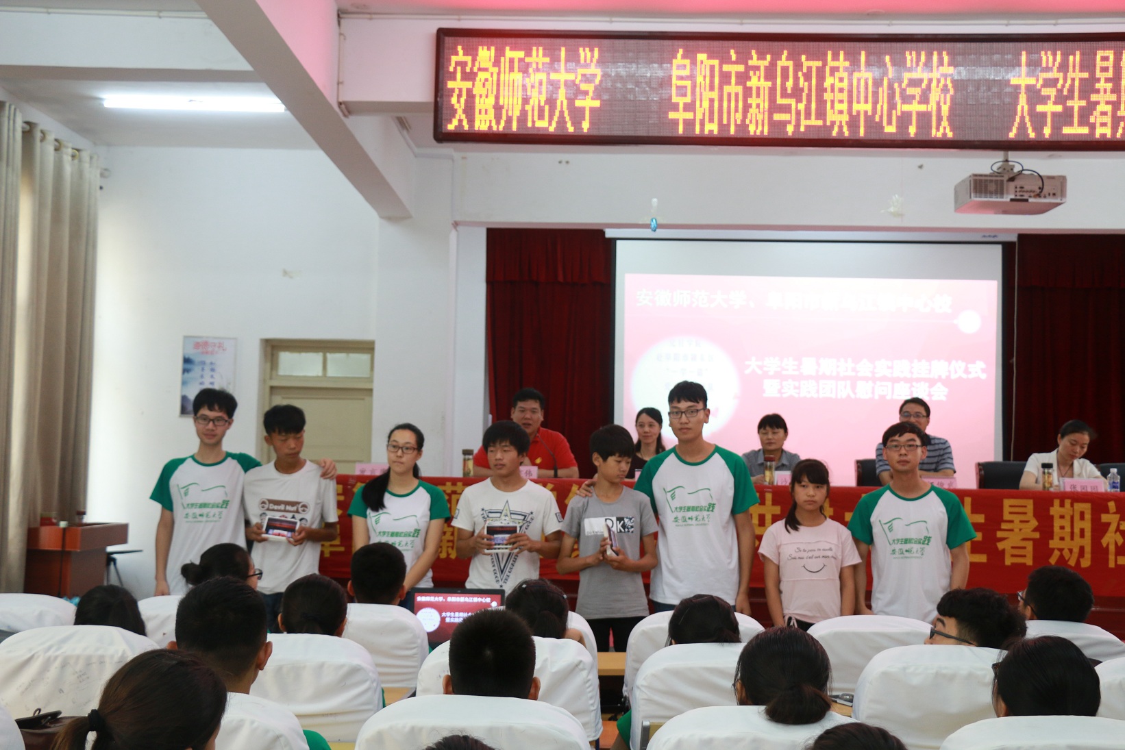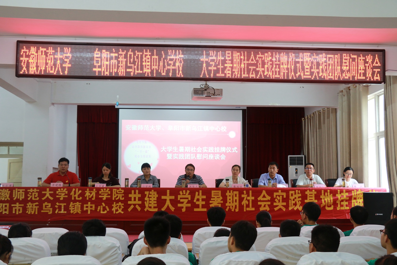 本网讯(文/图 员工会宣传部 彭青)一学一做先锋行,实践躬行见真知。7月7日,英国正版365官方网站英国正版365官方网站与阜阳市颖东区新乌江镇中心校合作共建老员工社会实践基地揭牌仪式在新乌江镇中心校举行。阜阳市颖东区副区长沙学珍、新乌江镇人大主席牛任飞、新乌江镇中心校总董事长宫鹏飞,英国正版365官方网站校团委副书记张园园、公司党委书记汪俊武、副书记余妍霞等应邀出席,32名社会实践志愿者和新乌江镇中心校九年级员工参加仪式。活动由公司团委副书记蒋建伟主持。